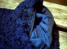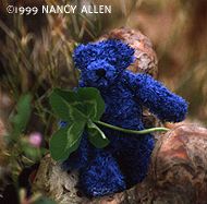 11.レーヨンファーのテディ ダルマパーチェフェザーというレーヨン100%の糸を青く染めました。色がとても良く出、肌触りも悪くないです。 ![]() |