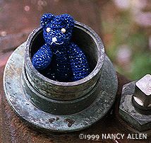 | 10.アクリルファーのミニチュアテディ アクリルはさすがに染まらなかった…一緒に染めたレースはあんなに青いのにね。 ![]() |