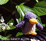 | 9.ペンギンの編みぐるみ 紫色の部分は、ブルーで染めたものです。媒染に酢を使ったら色が変わってしまいました。 ![]() |