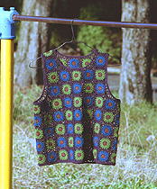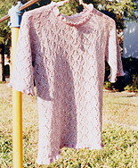 パターンは日本ヴォーグ社「毛糸だま1991年夏号」より。素材を麻に変更しました。ちょっと重くなりましたが、爽やかな1枚になりました。
