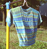 ハマナカコットンファンタジア使用。パターンは学研「鄭幸美のニット」より。一番最初の課題で作った感慨深いセーターです。この頃はわけわからずに無我夢中で作ってましたね。