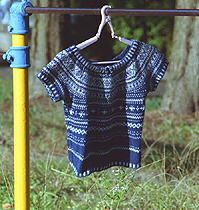 糸は本場のフェアアイルヤーン。まだざらざらですが、使うと柔らかくなるでしょう。製作は出産をまたいでしまったので1年以上かかってしまいました(実質は1ヶ月少しくらいでしょう)婦人ものですが編んだら大きくなりすぎてしまい、男性でも使える大きさになってしまいました。しかも去年編んだ方と今年編んだ方で大きさが違う(笑)裏表と編み方が違う、かなり凝りに凝った編み図で頭が混乱しそうでした。うーん私はやはり編み図より形や色で勝負する方が性に合ってるのか…。