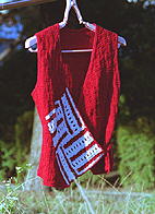 エク・トリーモロッコ(細)使用。これも赤白っすね^_^;中心の部分だけ課題だったので、無理矢理組み合わせています。あとは棒針です。製図が大変でした。