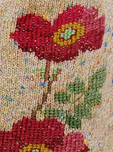 パターンはGerda Bengtsson Flowers and Berries in Cross stitchより、糸はアップルトンウール(タペストリーウール)。既成のセーターにクロスステッチをしてみました。目が粗くて数えるのが大変でした。