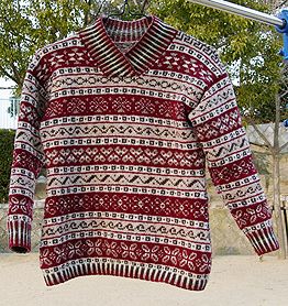 製図はオリジナル、ten oldさんのキットです。ようやく出来ました〜。全体にクラシックなパターンを満載したセーターです。写真ではわかりませんが実は幅が細すぎてちょっとピタピタです。修行が足りぬ…。