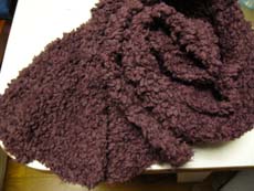 スキーファンタジア使用。ジャンボかぎ針でざくざく編みました。すぐ出来てしかも注目度バツグン!。ふだんはあまり太い糸は使わないんですが、感化されてためしに編んでみました。いい感じ!お気に入りです。