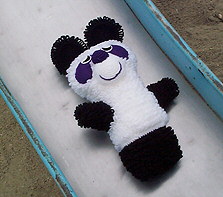 ハマナカボニー消臭使用。パターンはONDORIヤングシリーズ「たのしいあみぐるみ」より。リングこま編みという、全身にループが入ったかなり面倒な編み方で編んでいます。そのため1週間もかかってしまいました(泣)お友達にはものすごくウケましてごきげんです。高さ45cm。