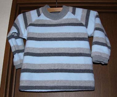 チビ用冬長袖。20080123パターンは以前と同じもの。フリースは布マーケットさん、リブはキバジさん。どちらも肌触りよく着心地がよさそう(私が着ていないのでわからないけど)今回は首の寸法も計算したのでちゃんと出来たよ。 |