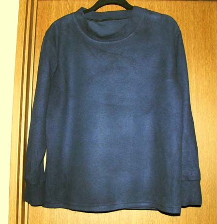 男子用プルオーバー。20080120生地はc&sさんのラッチパイル。予約までして買ったのに、色がイメージよりはるかに暗い青(っつーか紺だよ。ネイビーと書いてほしかった)だったので放っていたら、相方がこれで作ってくれと頼んだ。製図は本人から起こしました。袖と首をゆるめにとり肩幅も大きめ。冬のもう1枚にちょうどいいサイズと生地になりました。 |