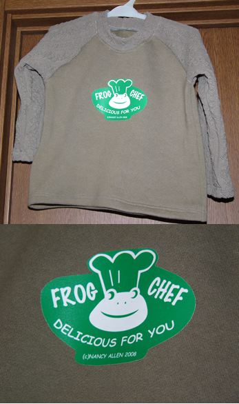 チビ用長袖。オリジナルプリント入り。20080310パターンはまたも使い回し。身頃はぽぷりさんの起毛裏毛カーキ、腕はオレンジーナさんで買ったシャーリングアラン。キバジさんのカエル生地が買えなかった腹いせに計画。しかし時間がなくプリント作ってから貼るまで1月もかかっちったよ。 |