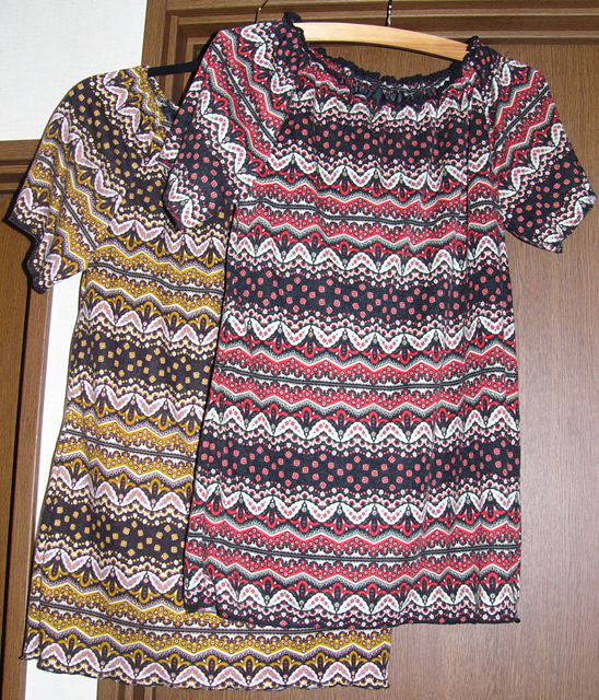 フォークロアプリントのカットソー。 20080409パターンはブティック社今すぐ着たいワンピース。1mしかなかったのでその範囲で作りました。生地はcosmoさん。よくアパレルで見かけるプリント。4時間くらいでささっと縫いましたが、裏地もついているよ。 |