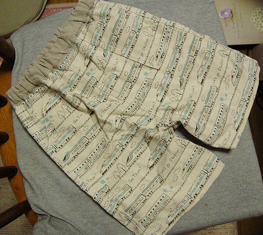 チビ用サマーパンツ。20080421パターンはPolka Dropsさんのサマーパンツ。ちょい大きめのような気がします。まだ穿かせてないけど。生地はウエダさんで買ったトレフルのしんかんせん。チビの好きな電車でと思ったものの、線路をつなげる(笑)のに苦労しました。前ポケットは縫いつけ。後ろも電車つながってまーす。 |