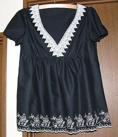 スカラップレースのVチュニック。 20080508生地はルジャンタンさんのローン生地。ギャザーがきれいに決まるいい生地でしたが、失敗すると生地が破れる…。えりに手芸ナカムラさんで買ったぶどうケミカルレースをあしらってお嬢な感じにしてみました。パターンは月居良子「着こなし自由ワンピース×チュニックブラウス」相変わらず大きめなような。。 |