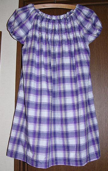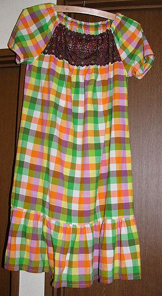 スカラップのお気楽ワンピ。 20080723生地はsunny-sideさんのギンガムスカラップ。ポリエステル生地なのでじつは暑いです。。 |