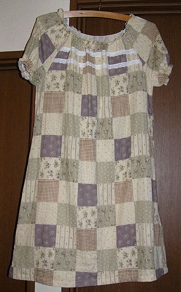 カントリーパッチスモック。20080730生地はswany greenstyleさんでお安く買った綿麻ダブルガーゼ。パターンはまたもブティック社「ガーゼリネンコットンの夏服」19pです。ちっちゃい女の子がいたらお揃いにしたいっす〜。 |
