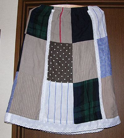 パッチワークのスカート。200608布はフェリシモで定期的に買っていた麻布。こんなスカートを一度くらい作りたくて、作ってみましたが縫うのが意外と大変。1月近くかかったような。パターンは自分の身体に合わせたオリジナル。 |