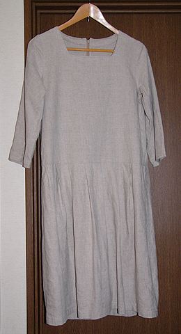 プレーンなストレートのシルエット。ピンタックいっぱい入れています。のんびりしたいときに着たくなる。布はスワニーさんの薄手のアイリッシュリネンです。おしりが毛玉だらけになっているのが少々きになります… |