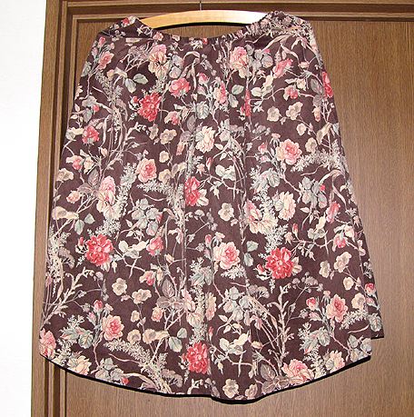 ウエストゴムのタックスカート。20061220これもコーデュロイ。アウトレットファブリックスで購入したコットンこばやしの布です。パターンはブティック社の「毎日着たいスカート」を参考に(注:本に載っているものはウエストゴムではありません)寸法は自分に合わせました。あこがれのゆれるシルエット、着ている時はいいんですが、写真にとるといまいちでんなぁ。。ギャザーよりタックの方が早く作れ、裏地もつけて1日ちょいで完成。 |
