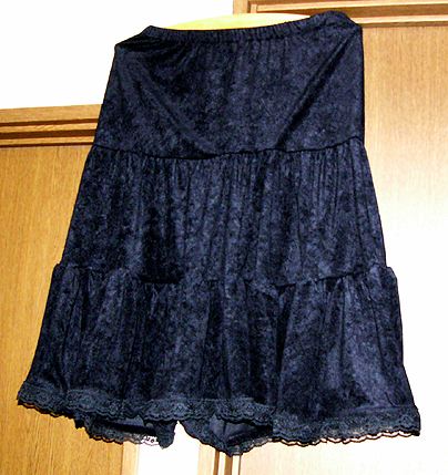 クラッシュベロアの3段ティアードスカート。20070111布はヤフオクで買ったニット地。パターンは自分でいつも使っている自分専用のものです。色は真っ黒。下段がふわふわと広がって歩くとかわいく動きいい感じ。でも作るのは大変だったのよ。 |