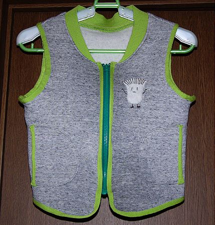 チビ用裏起毛ニットベスト。20070203布は布伝説で買った裏起毛しもふりニット、この布と同時に買った麻はボロボロでした(泣)リブとパイピングはリリアンさん。パターンは「着せたい縫いたい赤ちゃん服」婦人之友社(こどものきもの、の改訂版なんだそうです)デザインがシンプルだったのでアップリケもつけました(エリンギくん。私のデザインではない汗)まだ着せたことがないので似合ってるかどうかわかりませんが、私的には力作のつもり。 100で作りましたが、かなり大きかった。ニットだったので90で作れば良かったかしら。 |