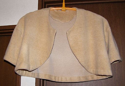 クラシックなボレロ。20070304布はチビとお揃いのパイルニット。パターンはこの間買ったばかりの「ソーイングポシェ」の一番最初のです。セレモニーに使えるかなと思ったら、体調を崩し間に合わず。。 |